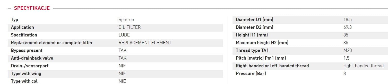 Filtr oleju silnikowego do maszyn budowlanych Takeuchi TB175