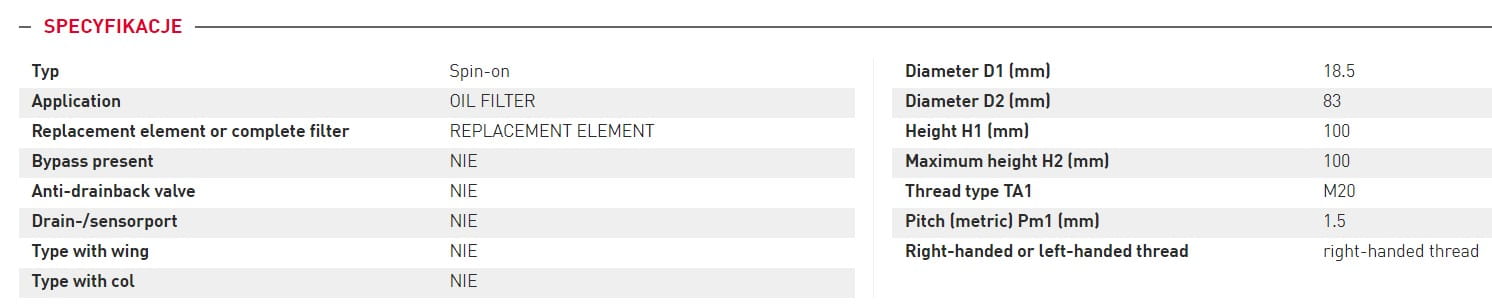 Filtr oleju silnikowego do maszyn budowlanych Volvo EC58