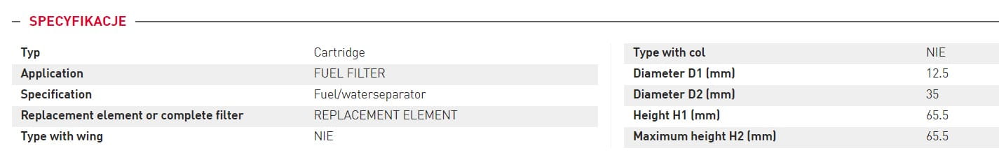 Wkład separatora wody Kubota KX91-2